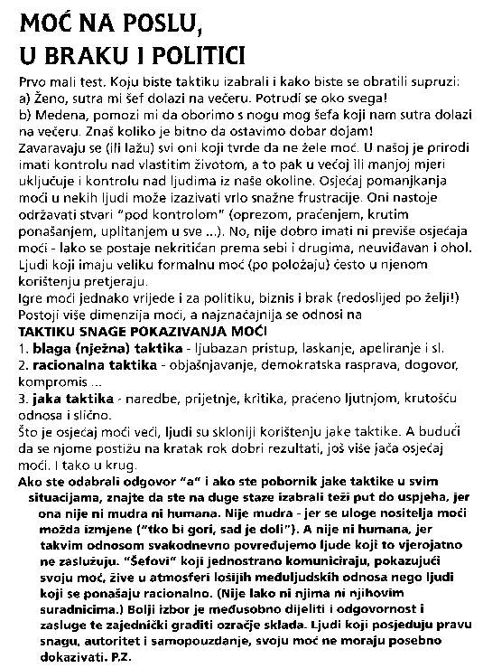 1. Strategijom protiv ometanja sa strane 2. Baratanje s predmetima 3. Sreća unatrag i sreća unaprijed 4. Izvucite pozitivno iz negativnog 5. Moć na poslu, u braku i politici 6. Kome još treba umjetnost ?
